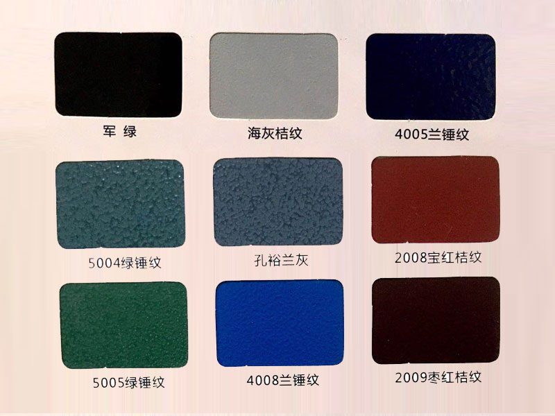 塑粉色卡是我公司主要生產(chǎn)的產(chǎn)品之一。產(chǎn)品具有**的流平性、附著力強(qiáng)、耐高溫、高光澤、美術(shù)立體感強(qiáng)等特點。主要產(chǎn)品有純聚酯型、純環(huán)氧型、混合型、金屬型、美術(shù)型等系列的高光、啞光、無光、磨砂、錘紋、大理石紋、仿銅系列、仿金屬漆系列等三十多個類型上千個色別的粉末涂料。